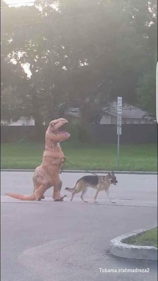 من و سگم تو خیابون با هم در حال قدم زدن